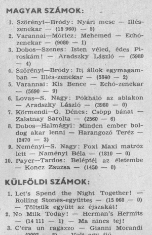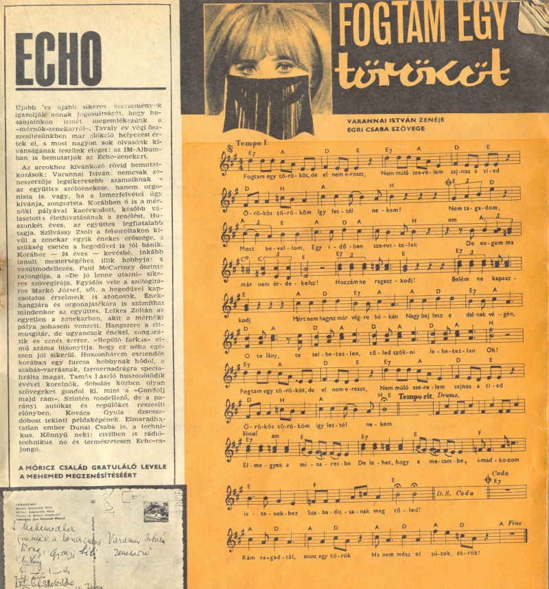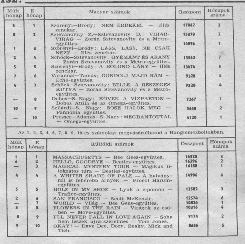 A képeken egy 1968-as Ifjúsági Magazinból látható a kotta, valamint két slágerlista, szintén az IM-ből. Az egyik 1967 márciusi, melyből kiderül, hogy az előző hónapban első volt a MEHEMED. A másik az 1968 februári slágerlista.