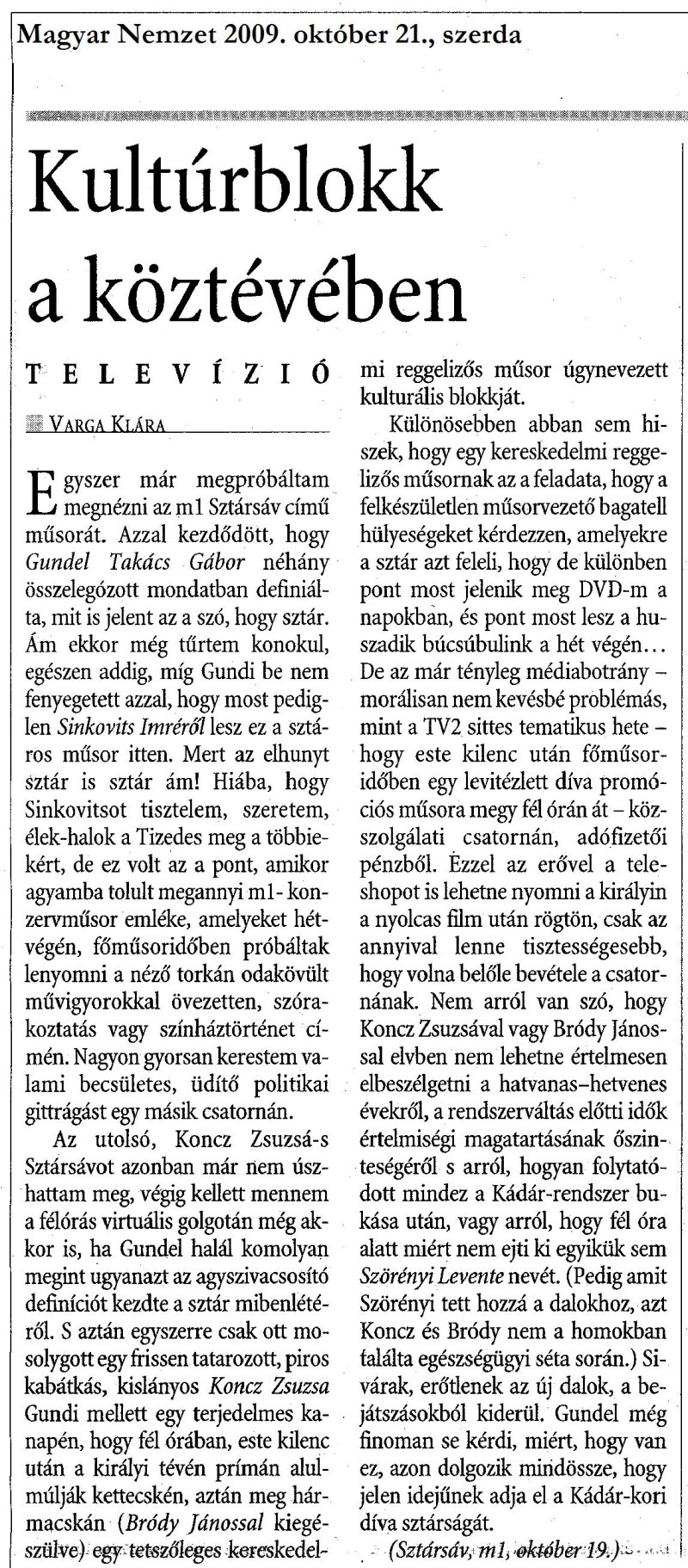 Sajnálom Dargay Attilát, és egyben köszönöm Neki a kellemes perceket! ![]() A cikkel kapcsolatban: amikor ilyesmit olvasok, hallok, mindig az jut eszembe, hogy "apám s anyám elváltak régen, de itt jól megférnek egy lapon" (remélem, jól idéztem). Az "itt" és az a "lap" bennem van, a szívemben őrzöm. A műsorról magáról megoszlanak a véleményeim.